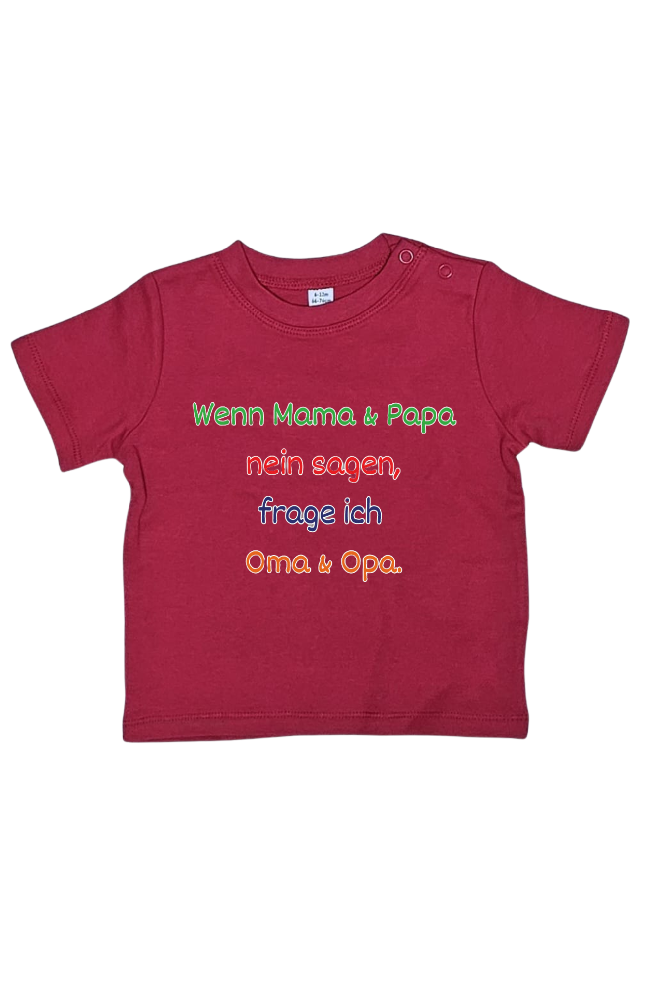 Baby T-Shirt, Wen Mama & Papa Nein sagen, frage ich Oma & Opa