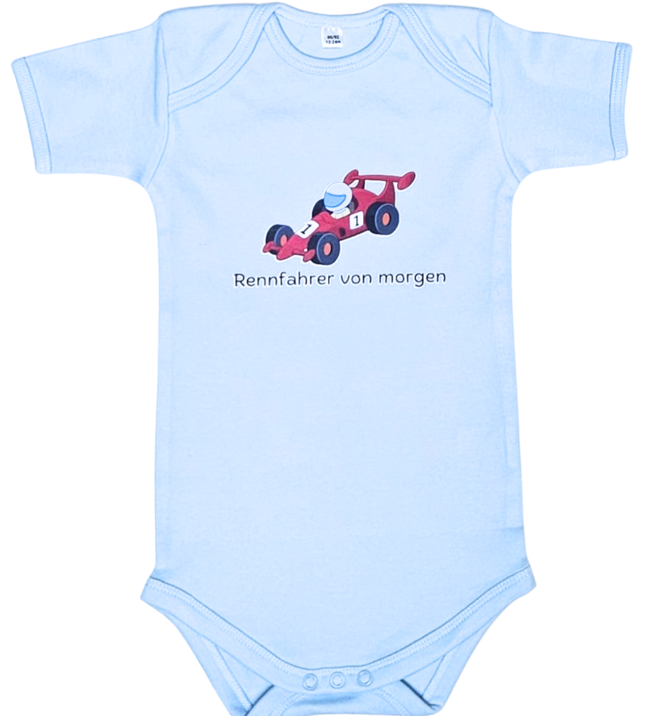 Baby-Body kurzarm, Wenn ich groß bin, werde ich Rennfahrer