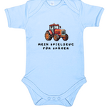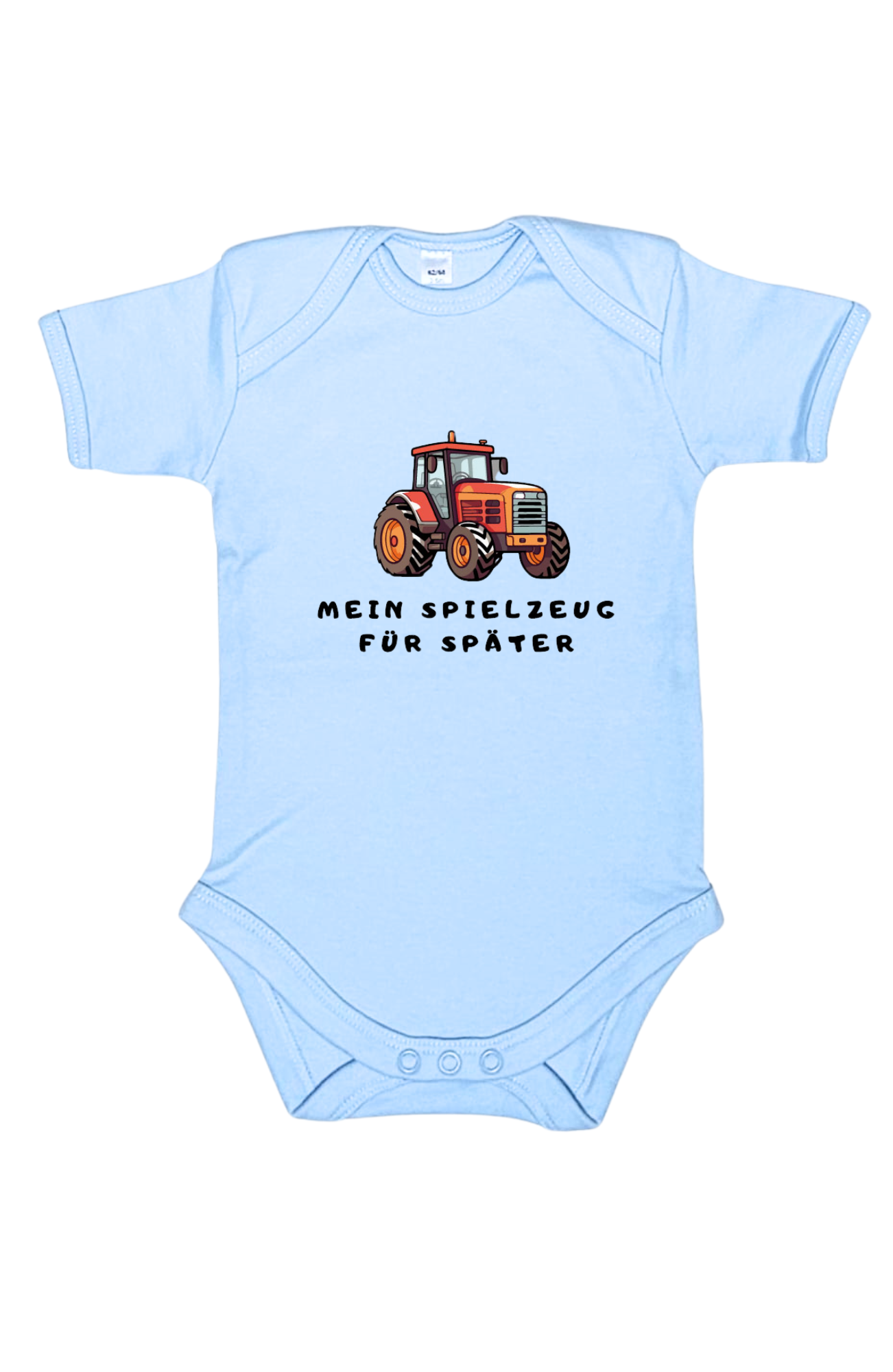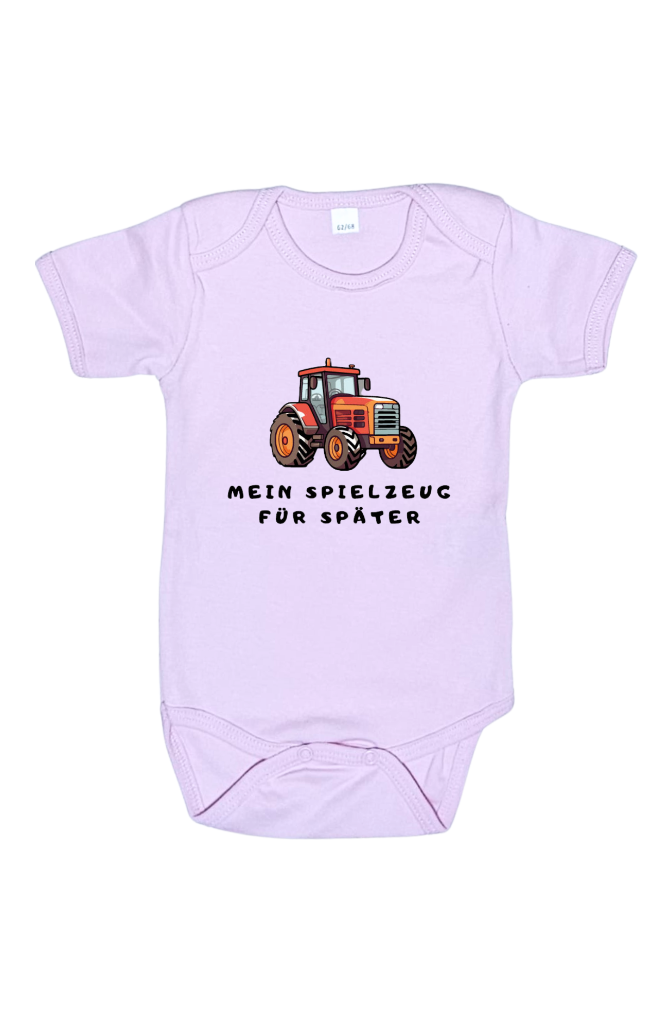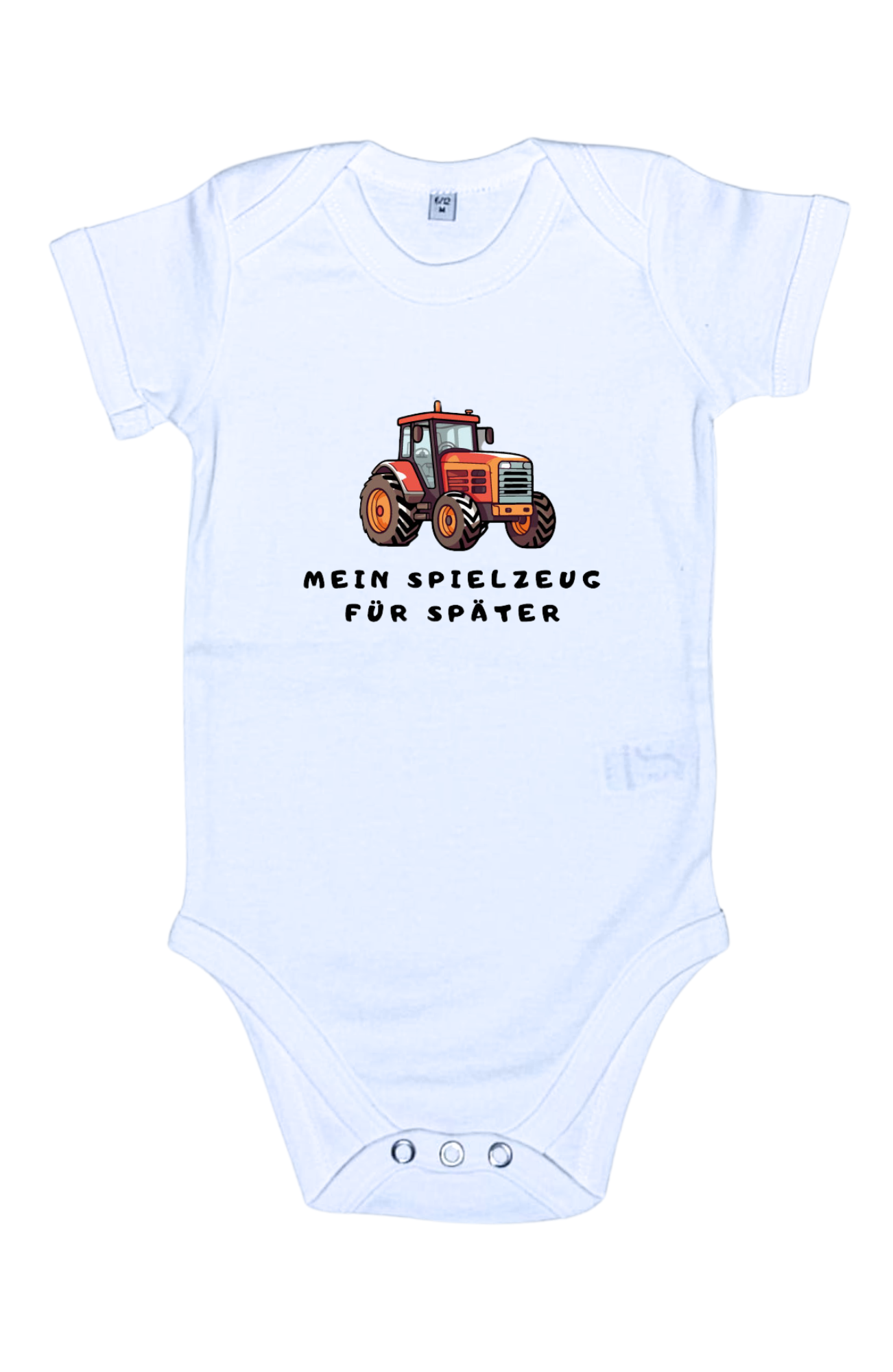 - Für kleine Nachwuchs-Landwirte und Traktorfans ist dieses Motiv ein echtes Must-Have! Unsere Kinderkleidung mit dem witzigen Spruch "Mein Spielzeug für später" bringt die Begeisterung deines Kindes für große Maschinen auf den Punkt. Ob auf dem Bauernhof oder beim Spielen im Garten – dieser Baby-Body macht klar, wohin die Reise geht.