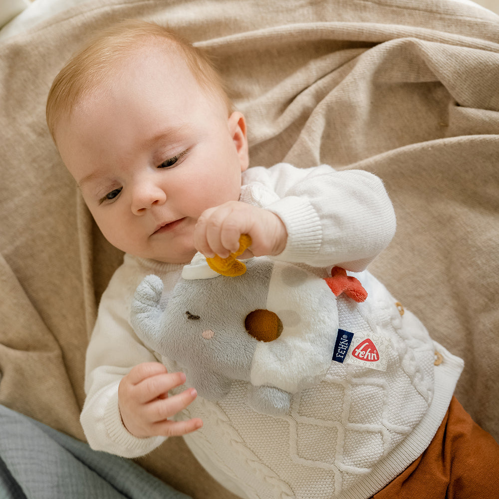 • TREUER BEGLEITER - Der kleine Elefant Greifling - ein treuer Begleiter: Das niedliche Babyspielzeug ist ideal zum Greifen und Kuscheln und regt mit integrierter Rassel im Nu zum Spielen an