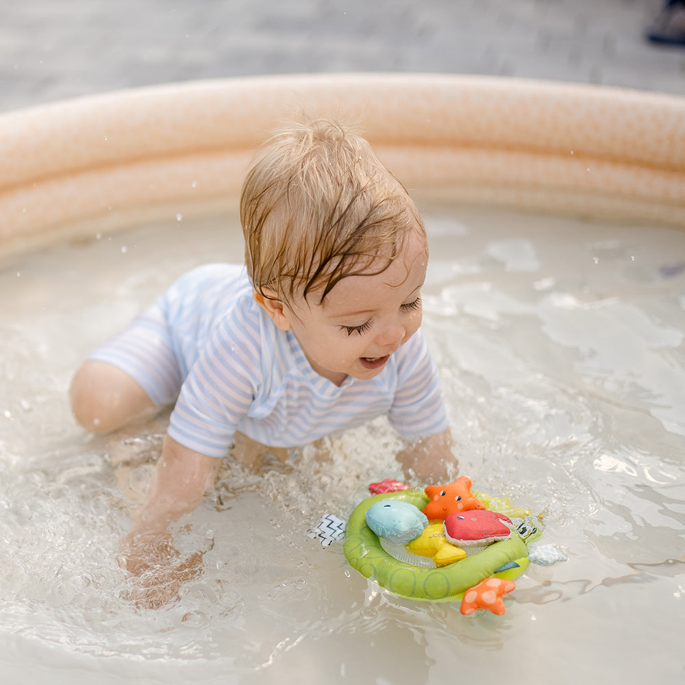 • Badespielzeug-Set aus wasserfesten Materialien mit Rassel und Raschelpapier