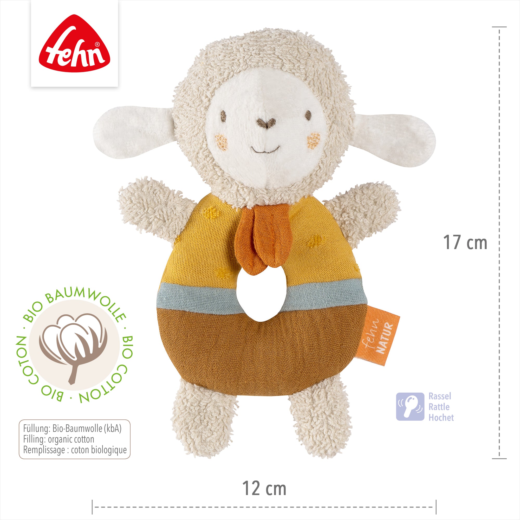 • TREUER BEGLEITER - Das kleine Schaf als Greifling ist ein treuer Begleiter: Das natürliche Bio Babyspielzeug ist ideal zum Greifen & Kuscheln, die integrierte Rassel weckt Babys Entdeckergeist im Nu und regt zum Spielen an