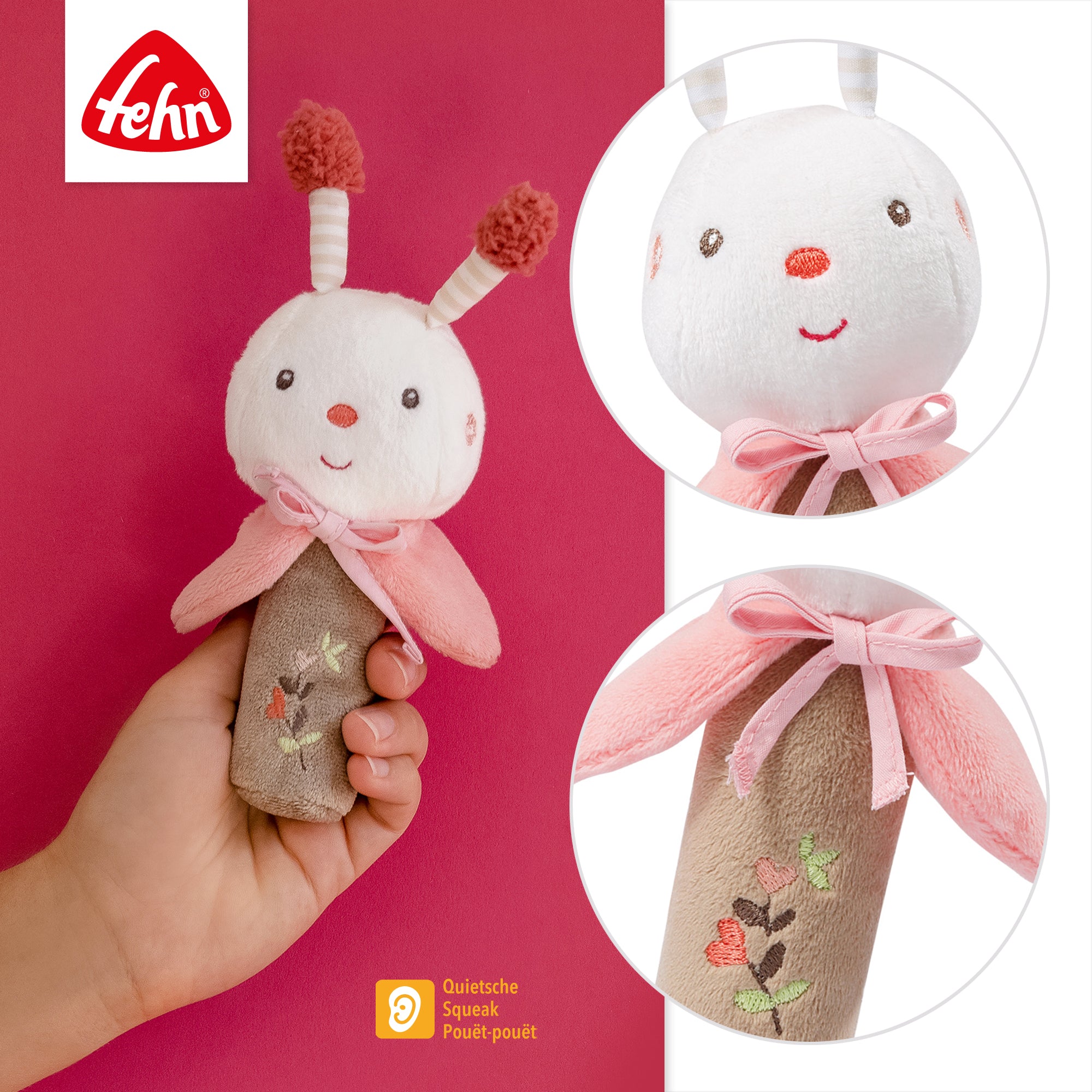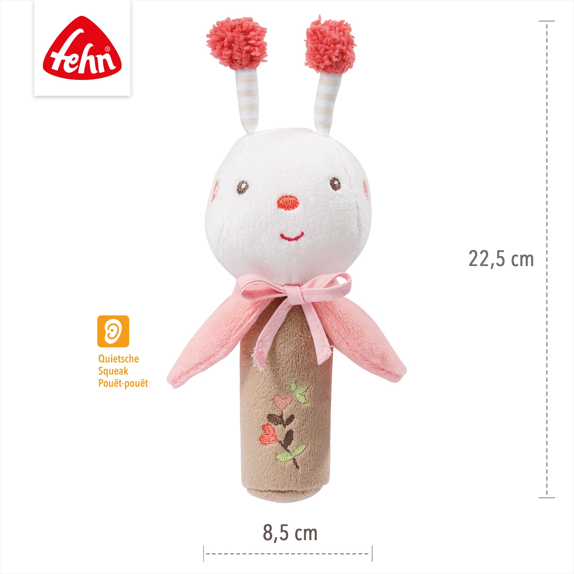 Greifling zum Quietschen, Fühlen, Spielen mit kuschelweichem Stoff-Tier – ein treuer Begleiter für Babys und Kleinkinder ab 0+ Monaten