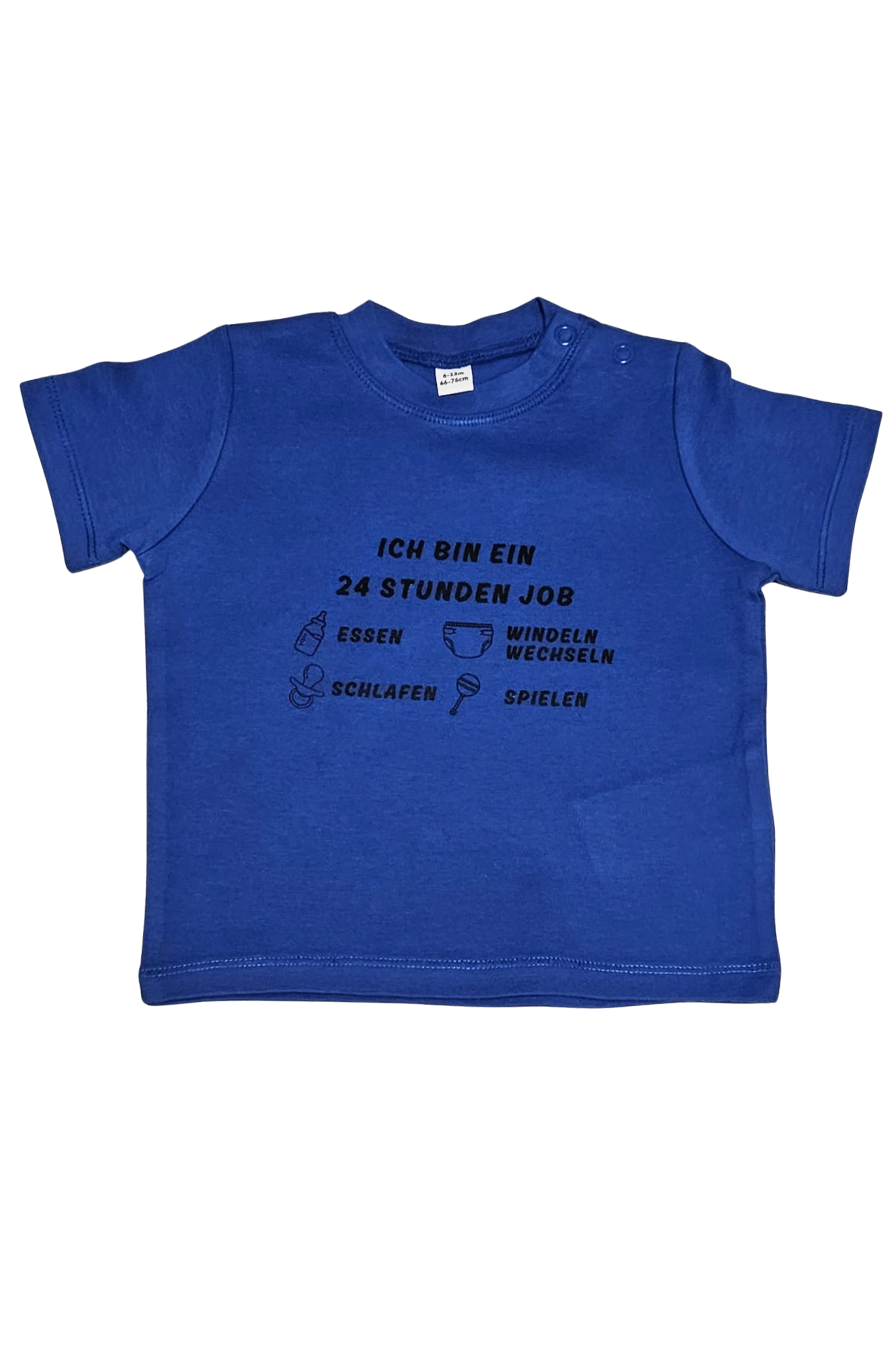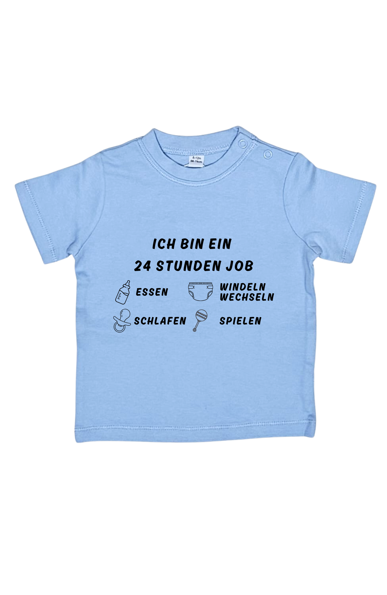 - Dieses Motiv bringt es auf den Punkt! Mit dem humorvollen Spruch "Ich bin ein 24 Stunden Job" zeigt dein Kind nicht nur seinen einzigartigen Charakter, sondern zaubert auch den Eltern und Freunden ein Lächeln ins Gesicht.