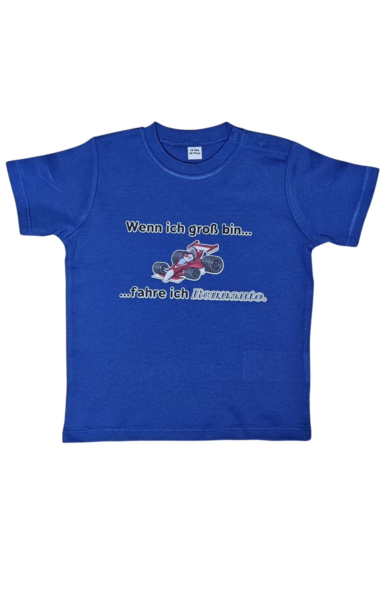 - Für kleine Motorsport-Fans, die große Träume haben! Unsere Kinderkleidung mit dem Motiv "Wenn ich groß bin, fahre ich Rennauto" ist die perfekte Wahl für alle Kids, die den Traum von der Rennstrecke leben. Ob auf dem Spielplatz, in der Schule oder bei einem Ausflug – mit diesem Shirt zeigen kleine Auto-Fans, wo ihre Leidenschaft liegt.