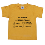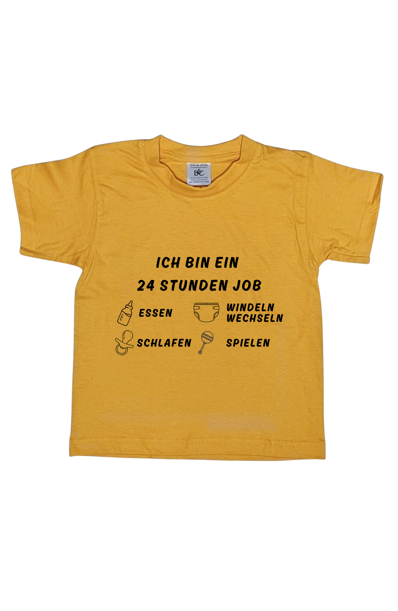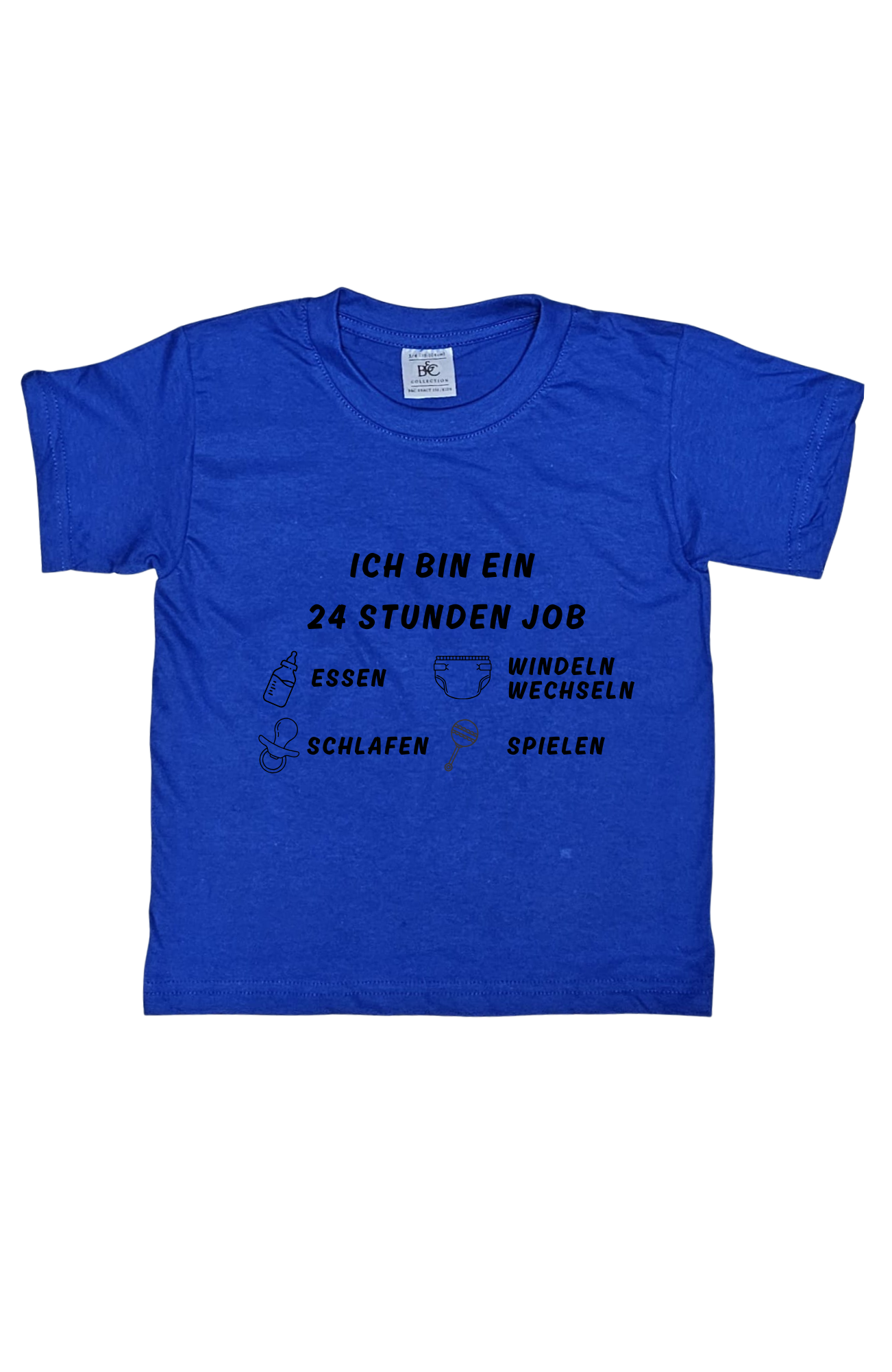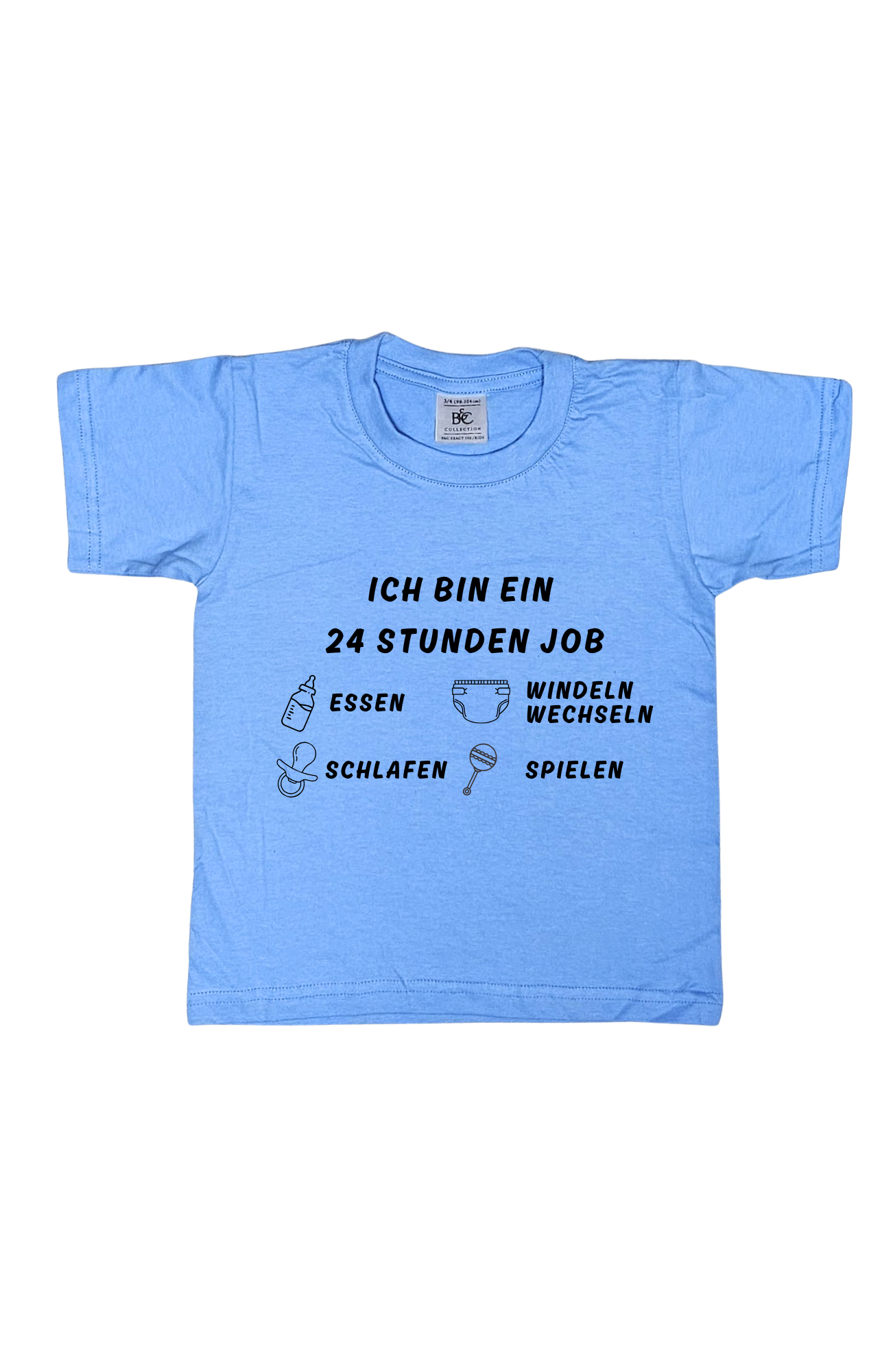 - Dieses Motiv bringt es auf den Punkt! Mit dem humorvollen Spruch "Ich bin ein 24 Stunden Job" zeigt dein Kind nicht nur seinen einzigartigen Charakter, sondern zaubert auch den Eltern und Freunden ein Lächeln ins Gesicht.