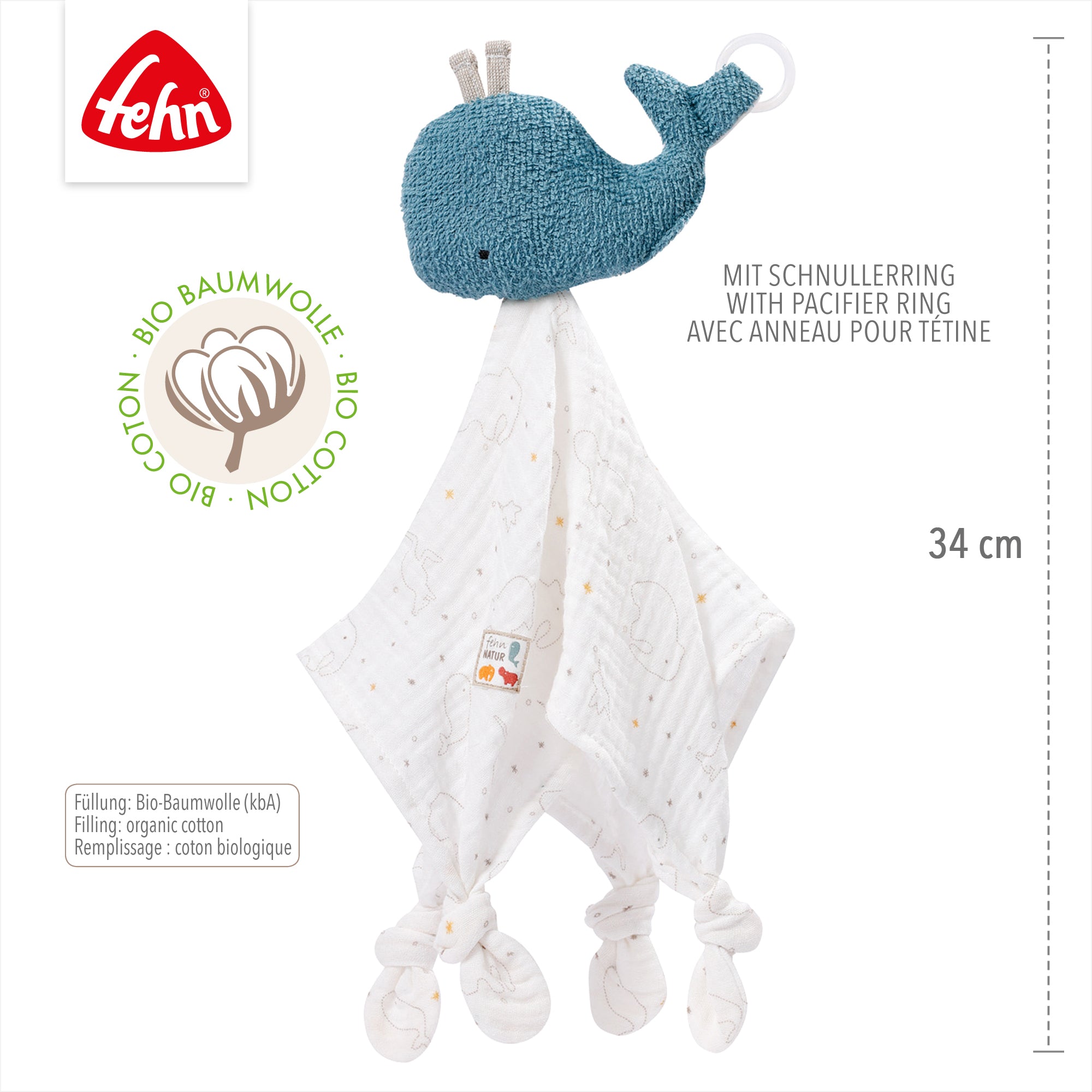 • WEICH & SICHER - Die Obermaterialien und Füllung mit Bio-Baumwolle laden zum Kuscheln, Fühlen und Spielen ein, sodass der knuddelige Wal bald nicht mehr aus der Hand gelassen wird