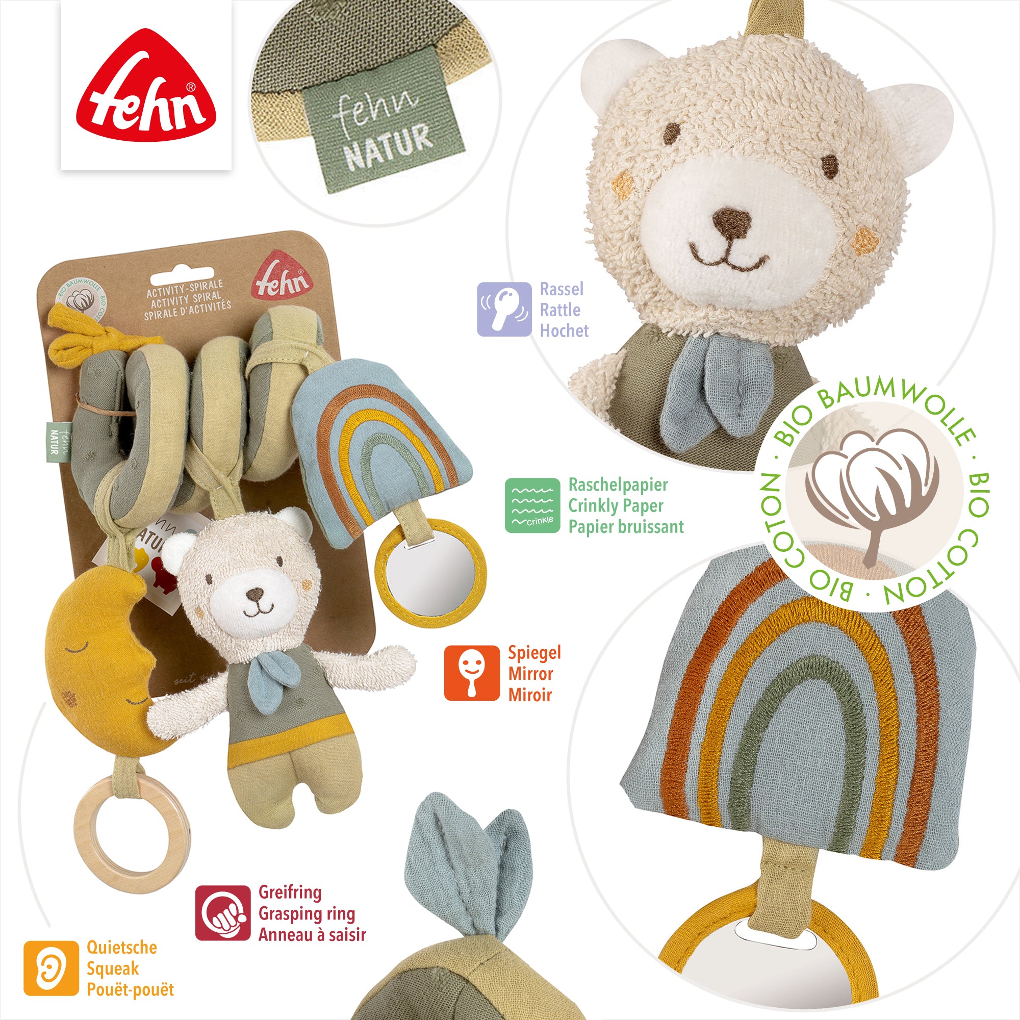 Stoff-Spirale mit Lernfunktionen und Bio-Baumwolle aus kontrolliert biologischem Anbau – fördert Babys Sinne zuhause & unterwegs – für Babys ab Geburt