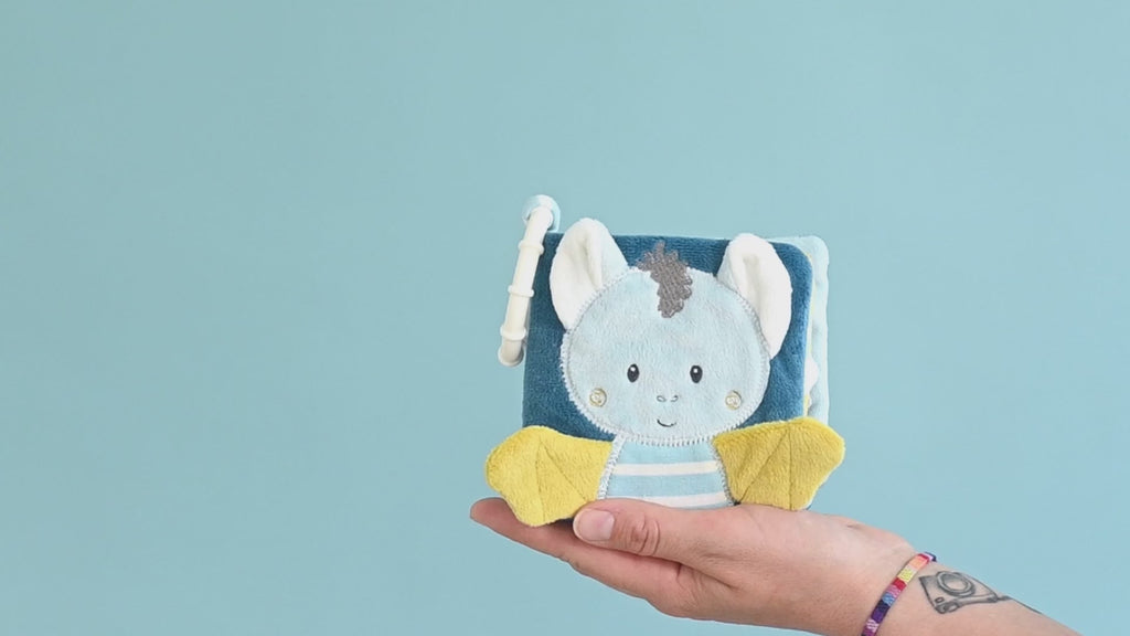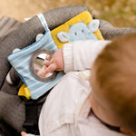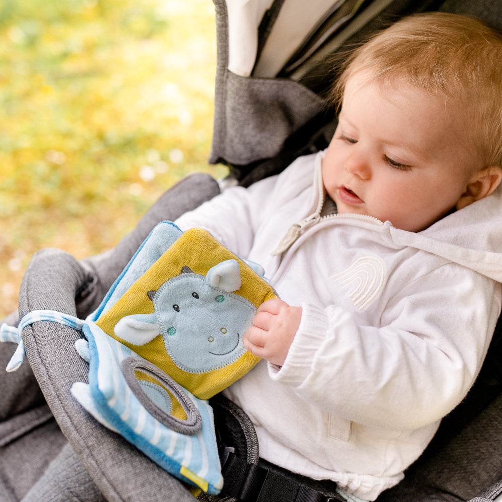 • PRAKTISCHE BEFESTIGUNG - Der Befestigungsring am kuscheligen Bilderbuch sorgt dafür, dass es ganz leicht und sicher an der Babyschale, am Kinderwagen, am Babybett oder im Auto befestigt werden kann