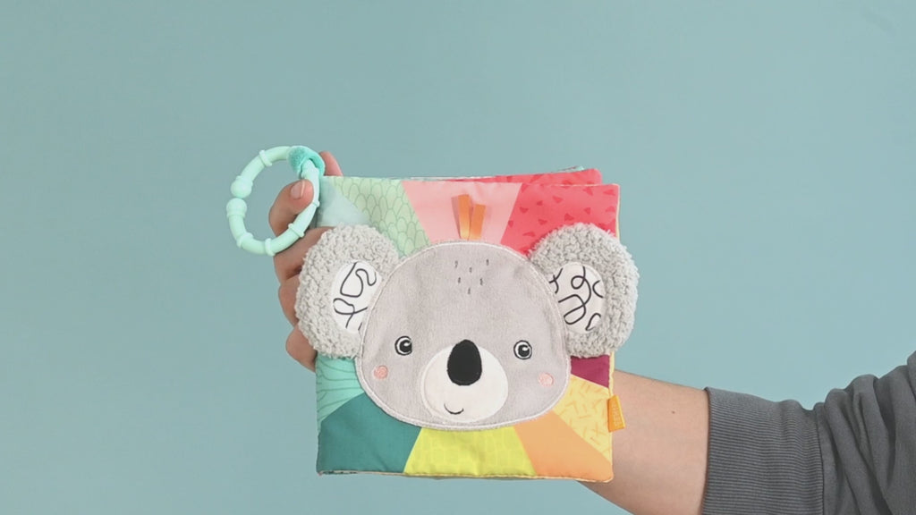 • PRAKTISCHE BEFESTIGUNG - Das kuschelige Bilderbuch kann dank des Befestigungsrings ganz einfach an Kinderwagen, Babyschalen oder Betten befestigt werden