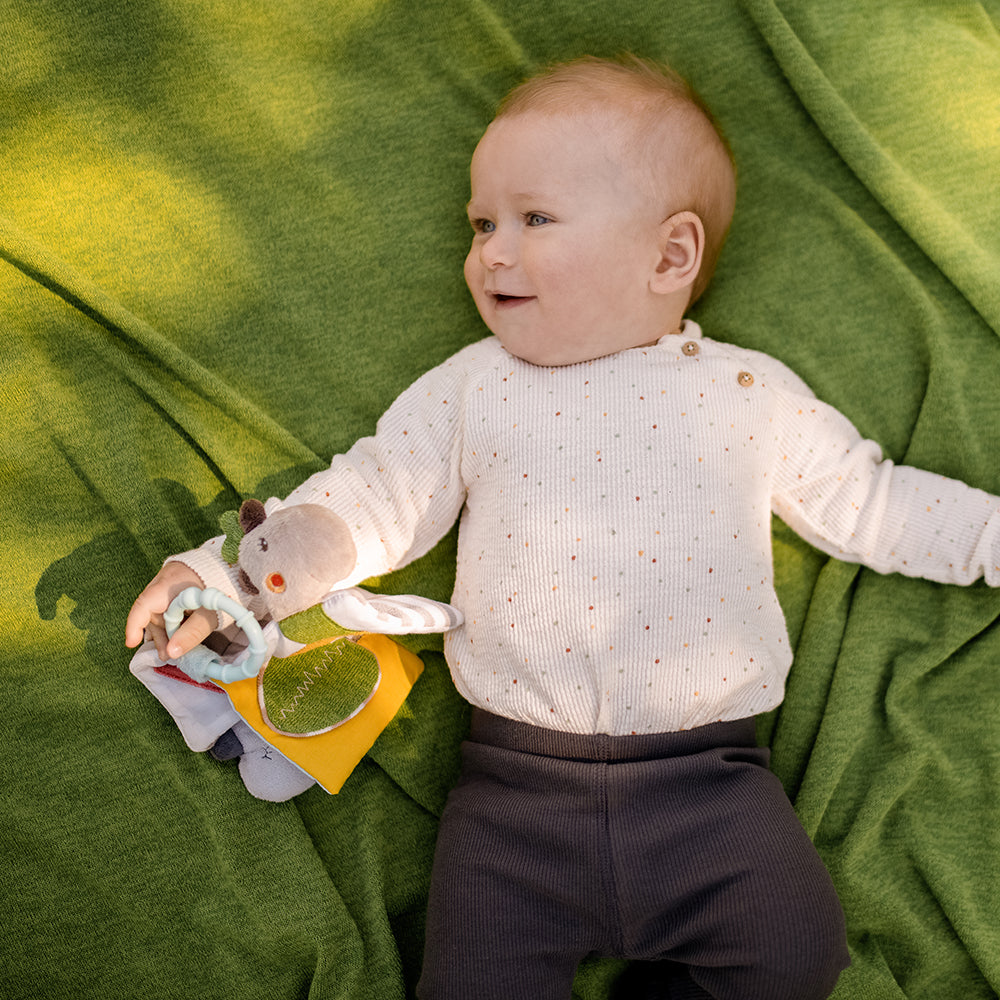 In unseren Spielspaß Produkten verbinden wir verspielte Designs mit hochwertiger, nachhaltiger Qualität. Mit den interessanten Strukturen und anregenden Geräuschen der integrierten Rasseln wird es nie langweilig