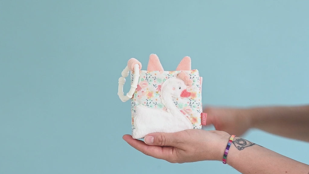 • PRAKTISCHER BEGLEITER - Dank des Befestigungsrings kann das Kuschelbuch ganz einfach am Babybett, Kinderwagen oder an der Babyschale befestigt werden und ist ein sicherer Hingucker für Ihr Kleinkind
