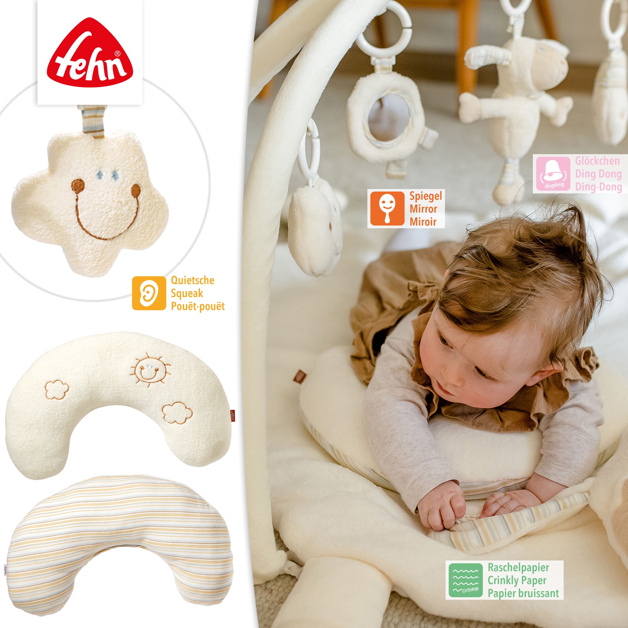 • mit Glöckchen, Quietsche, Spiegel, Raschelpapier & Nackenkissen